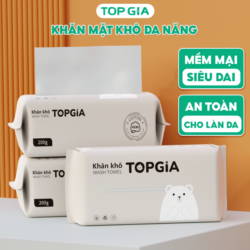 Khăn lau mặt dùng 1 lần TopGia, khăn lau đa năng không mùi an toàn cho da và siêu tiết kiệm (Khăn khô rút bao bì mới)