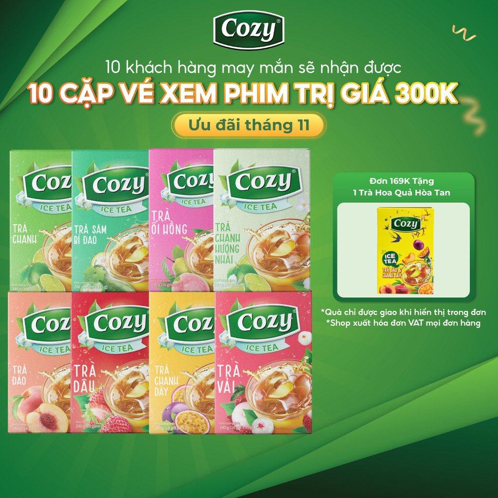 Cozy Đào, Cozy Ổi Hồng, Chanh Hương Nhài, Cozy Chanh Dây, Cozy Dâu, Cozy Vải, Cozy Sâm Bí Đao, Cozy Chanh, Trà gừng 20gói x10gr, Trà Gừng
